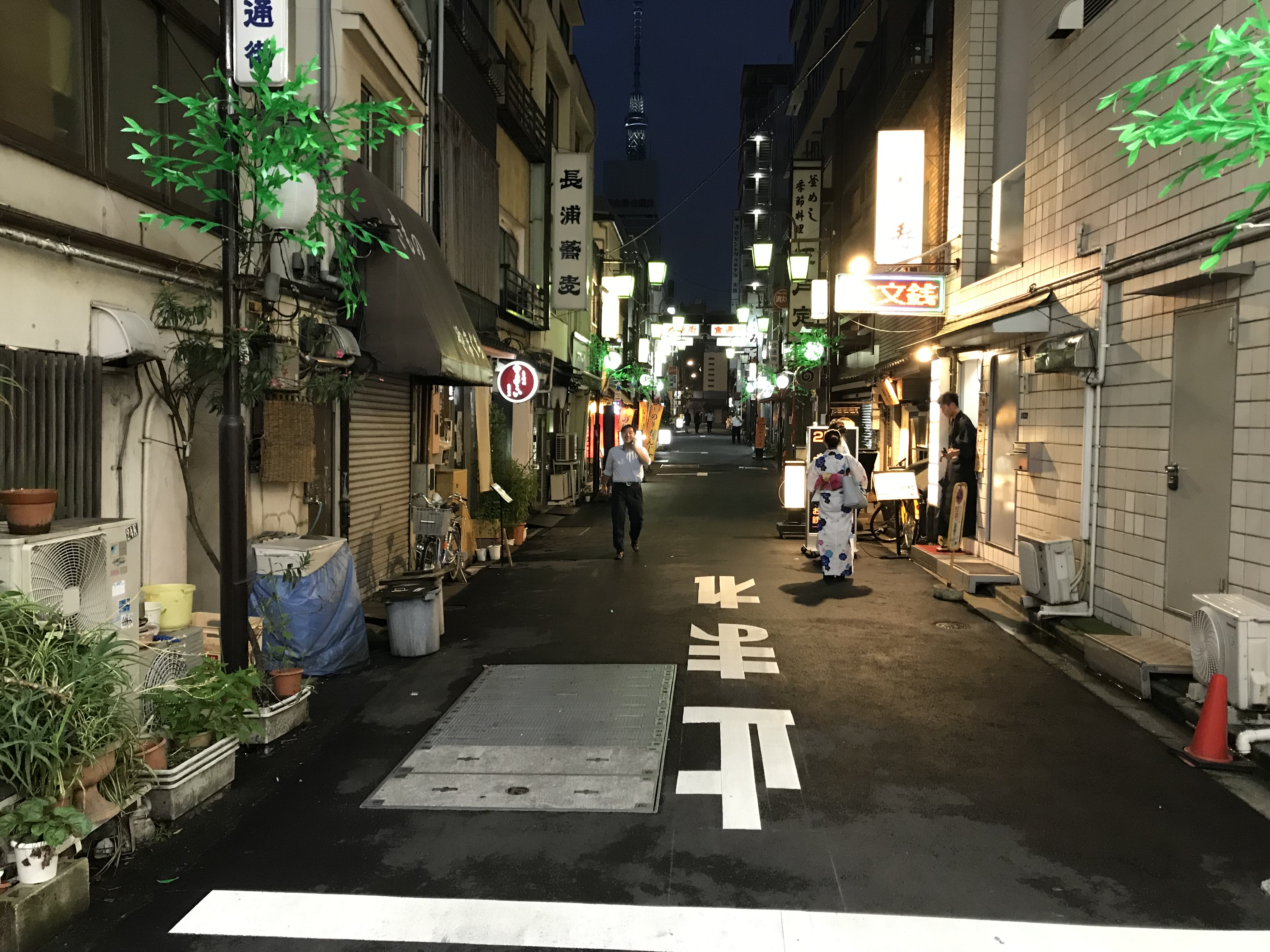 En effet, ce sont de petites routes bordées de trottoirs étroits et casse-gueule. Les infrastructures ne font pas plus d’un étage et la ville est calme. (Du moins pour ce qui est du matin). Les murs sont souvent très colorés, passant de jaune poussin à des bleus turquoise et plus foncés. Les entrées des restaurants, magasins et autres habitations sont très petites. Pour te dire, il faut se baisser pour passer les portes. La ville est finalement assez typique de ce qu’on peut s’imaginer d’une petite ville japonaise.