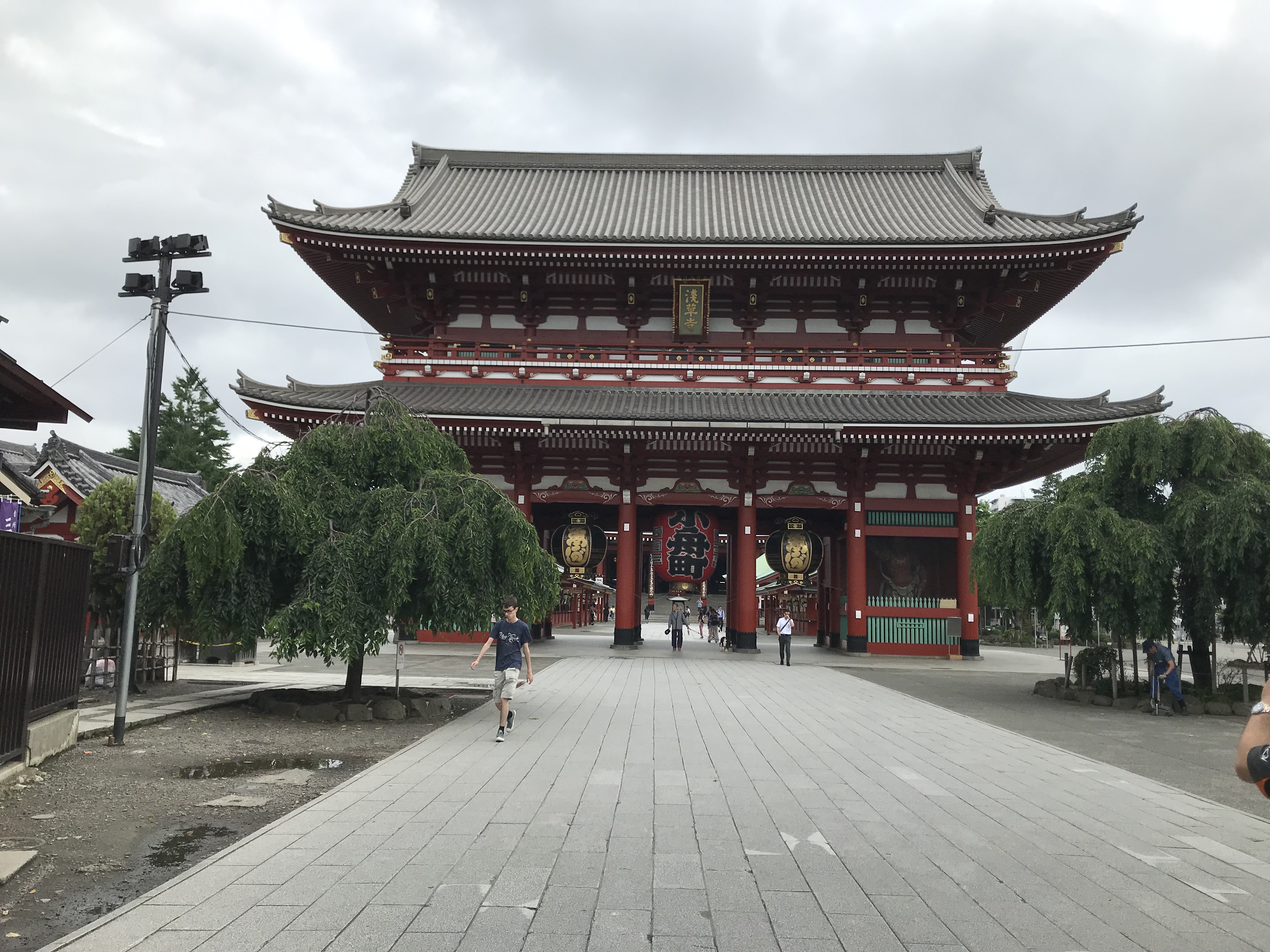 Un petit temple bouddhiste du centre-ville et un de ces fameux parapluies japonais transparents.En matière de spiritualité, le gigantisme architecturale est à l’honneur ! Cette porte n’est qu’une des nombreuses portes du domaine où se trouve les temples. En la traversant, nous sommes censés nous purger de nos mauvaises pensées et mettre de coté notre égo.Le domaine est si paisible et si joli qu’on en oublie la pluie ! Et on enlève ses chaussures à l’entrée ! ! Les temples boudhistes sont souvent décorés jusqu’au plafond et rien n’est laissé au hasard ! Ici ces dragons permettent de protéger le temple des nombreux intempéries qui sévissent.Un petit jardin en plein coeur d’un des nombreux temples du domaine. Au japon, la végétation est hyper controlé ! Ce n’est pas très perma-culture tout ça, mais qu’est ce que c’est beau !Ce soir je mange des Soba, ces pates froides de sarrasin que l’on trempe dans une petite soupe. Typique du Japon, et super bon ! La restauratrice, une petite dame au sourire gravé jusqu’aux oreilles ( littéralement comme dans les mangas ) était d’une gentillesse et d’une joie de vivre incroyable ! Et oui, je t’avoue que ça aussi, ce fut dépaysant !Après-manger, c’est petite promenade et immersion dans les rues écarlates de Tokyo.