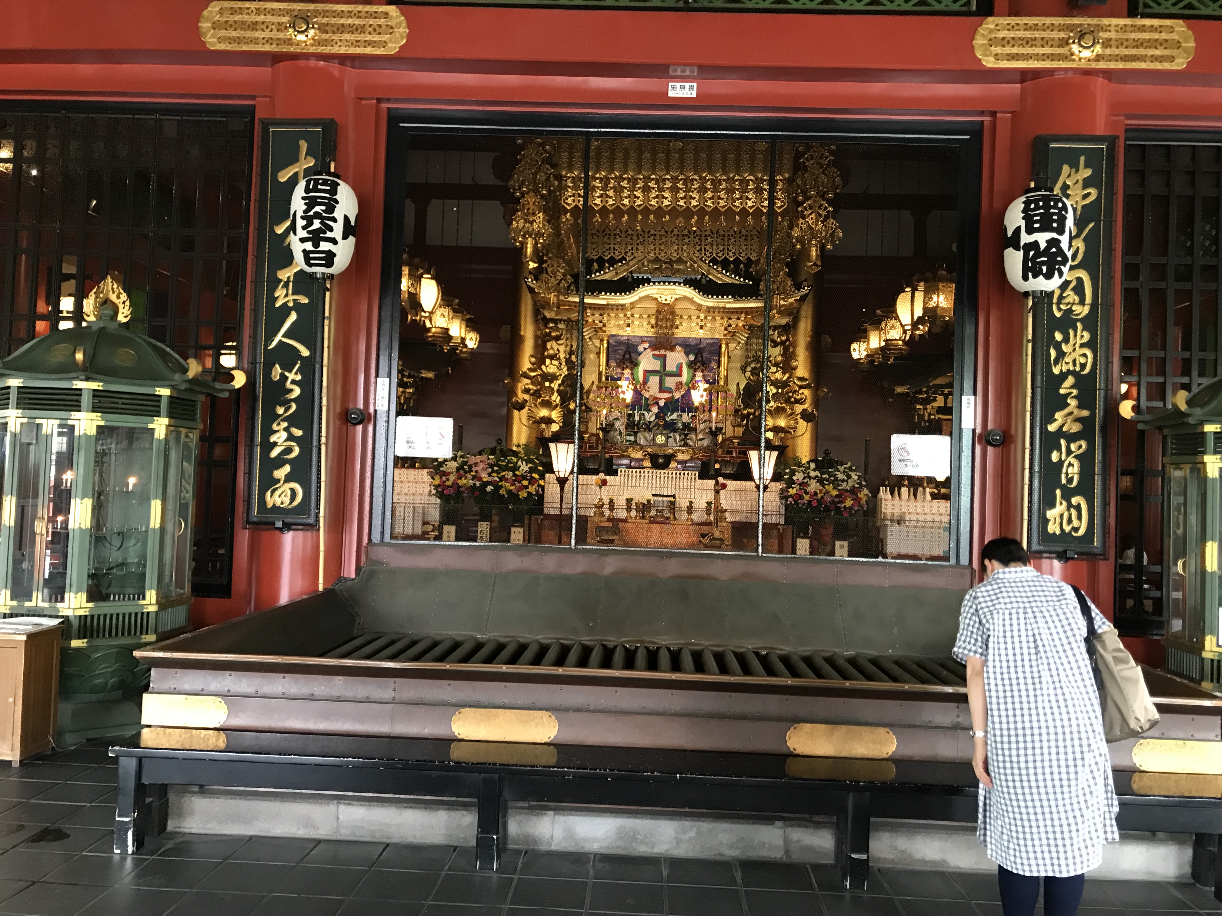 Dans une petite pièce du temple, les marques de ses claquettes sur le sol sont exposés. Elles font le double de ma taille. Pas intérêt de l’enmerder ! J’apprends qu’il fait (que…) 13 mètres de hauteur et que le plus grand du monde se trouve aussi au Japon, mais dans la ville d’Ushiku et ne fait pas moi de 120 mètres de haut. Pour te donner une idée, c’est à peu près la moitié de la tour eiffeil…Bon là, c’est clair, la spiritualité et le japon sont une seule et même chose !