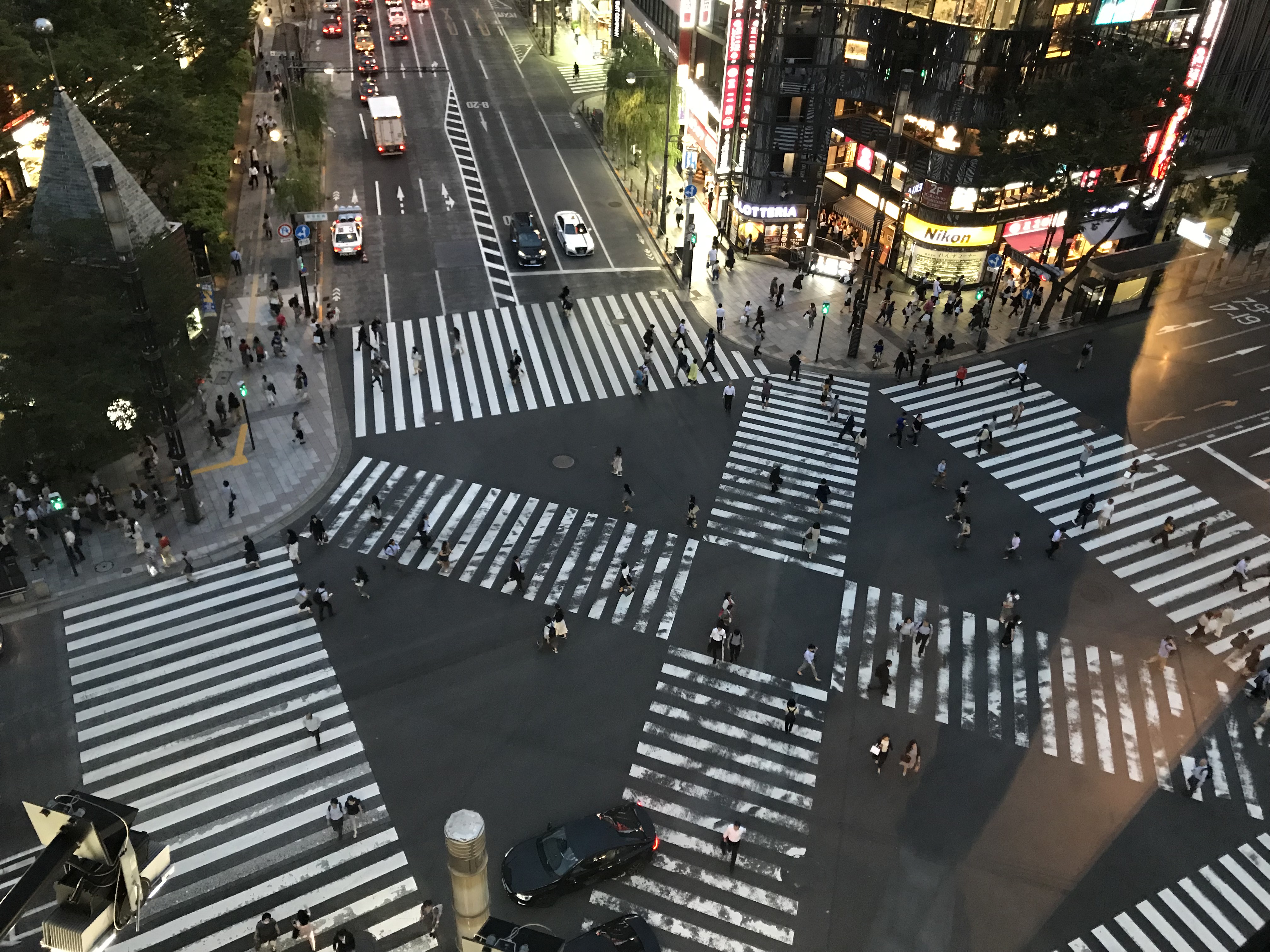 J’arrive à un feux tricolore. On entends une mouche voler, aucune voiture à l’horizon et je m’apprête à traverser quand j’aperçois que de part et d’autres de la rues, les japonais, immobiles, attendent en silence que le bonhomme rouge passe au vert. Je recule d’un pas et respecte la tradition non sans esquisser un sourire.