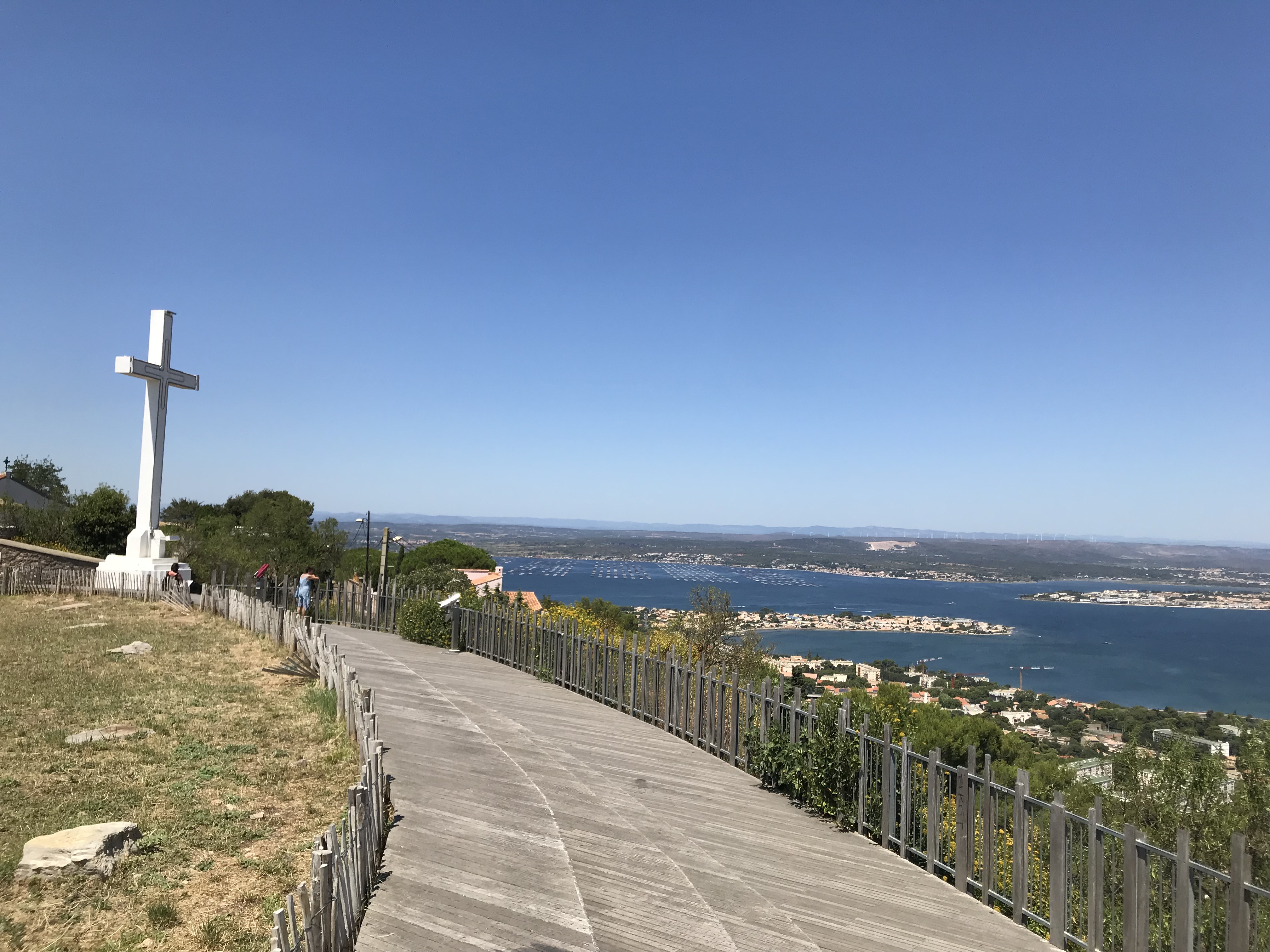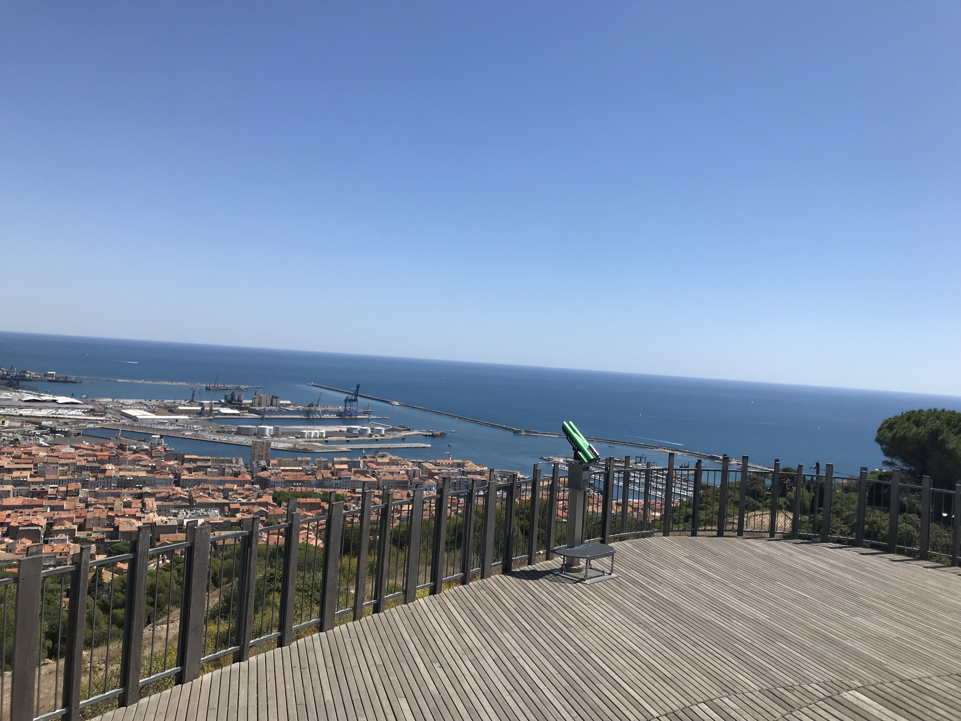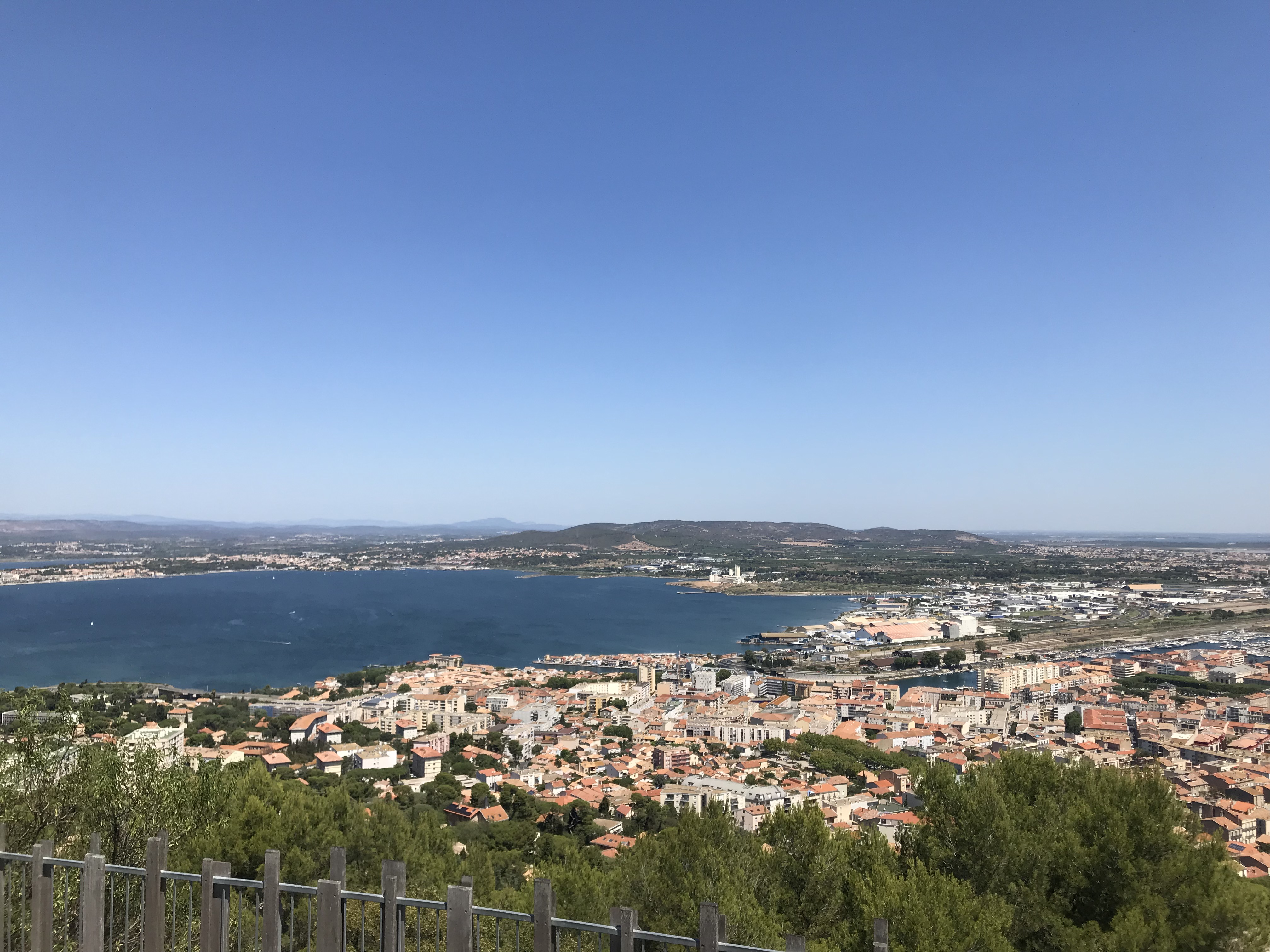 Après une quinzaine de minutes à avancer de façon hasardeuse, un panneau indique “vue panoramique Sète” sur la gauche. Un cri de joie se fait entendre en moi et j’y vais.