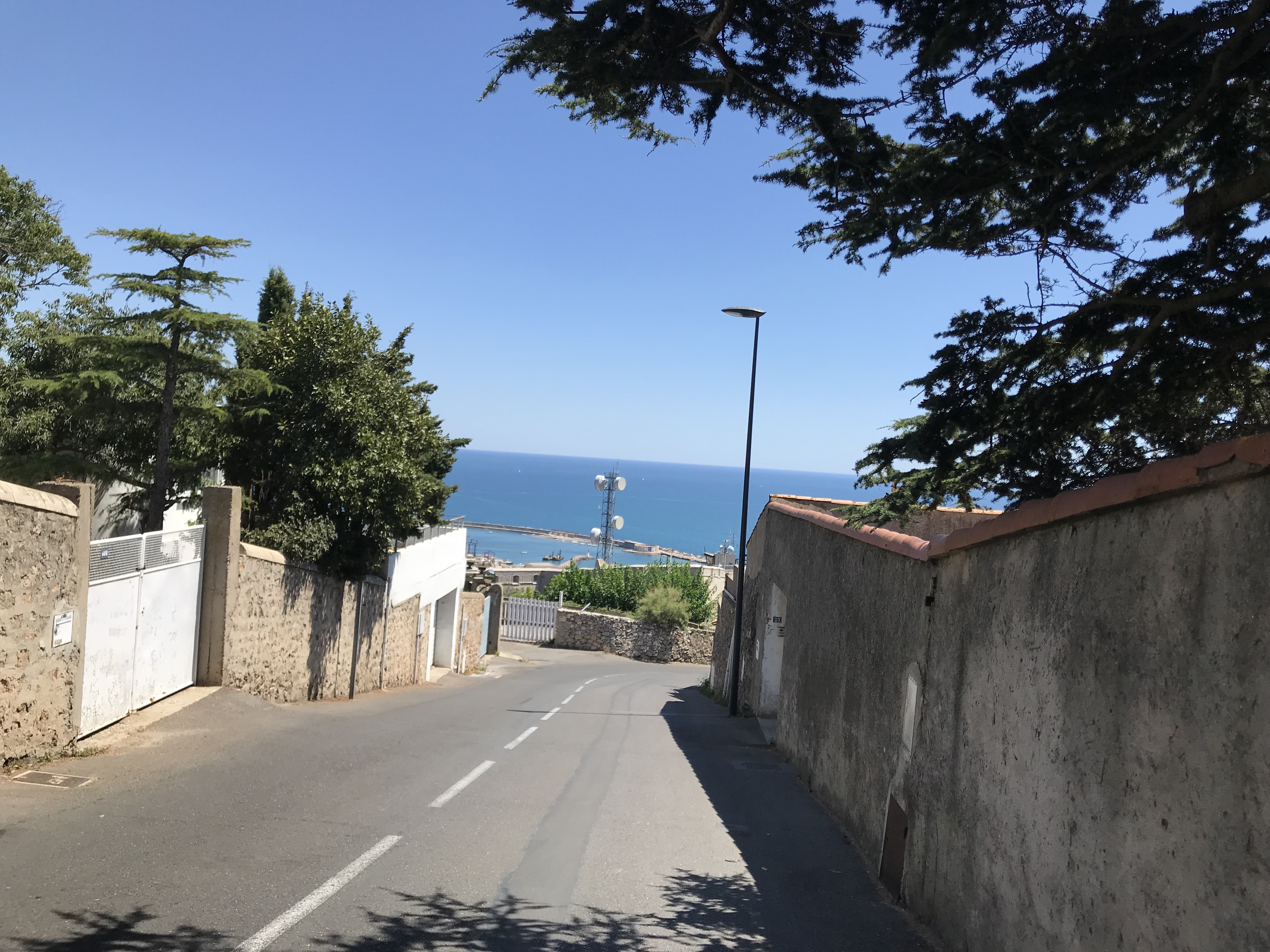 Au départ, j’ai commencer depuis la gare de Sète sans canne comme d’habitude. Au bout de dix minutes de marche tranquille, ça s’est mis à monter assez promptement et là, j’ai tenu à peu près 100 mètres puis je me suis dis que si je voulais aller au bout de cette expédition sans faire de pauses toutes les cinq minutes, j’allais devoir sortir ma canne de marche.
