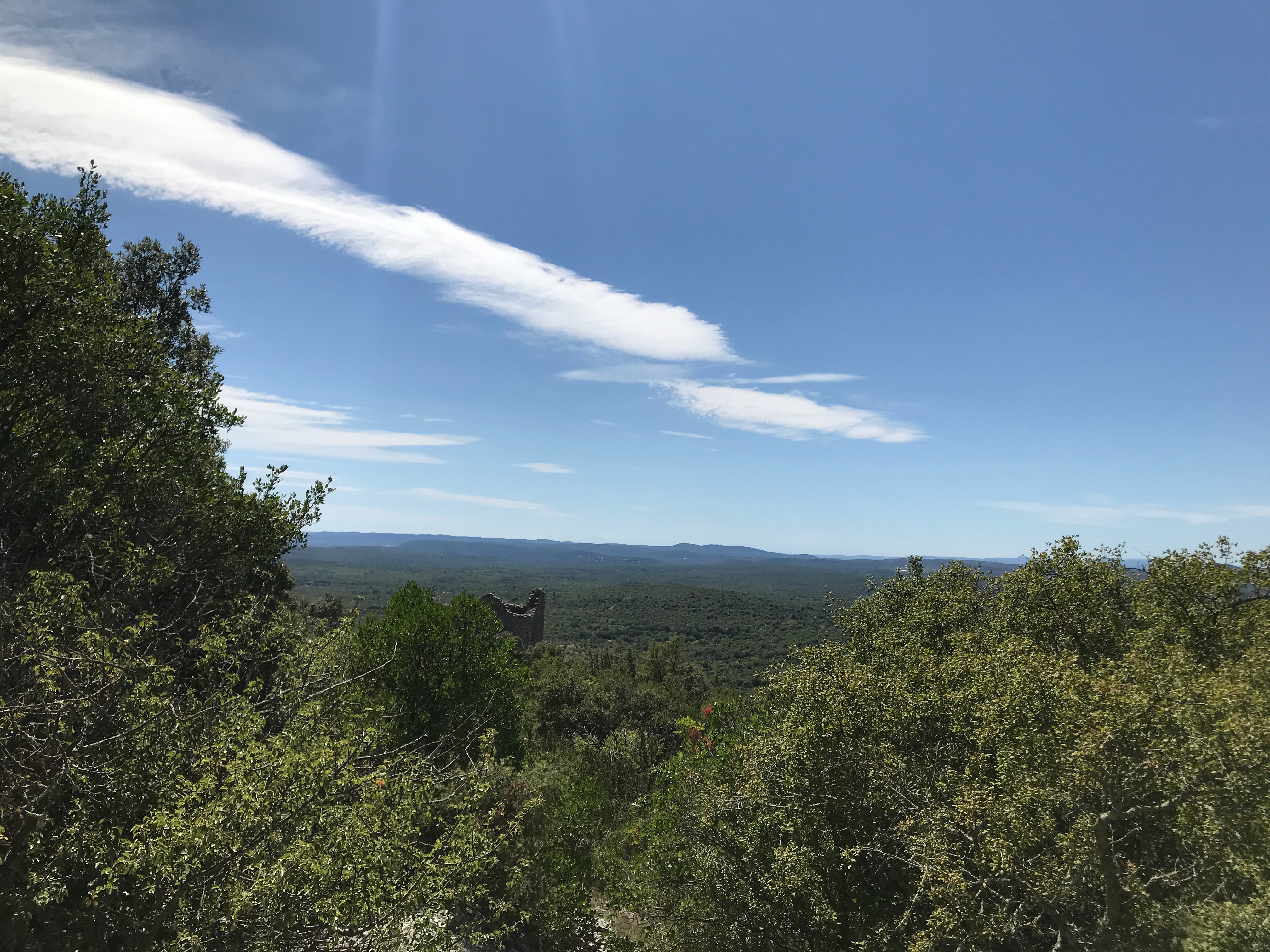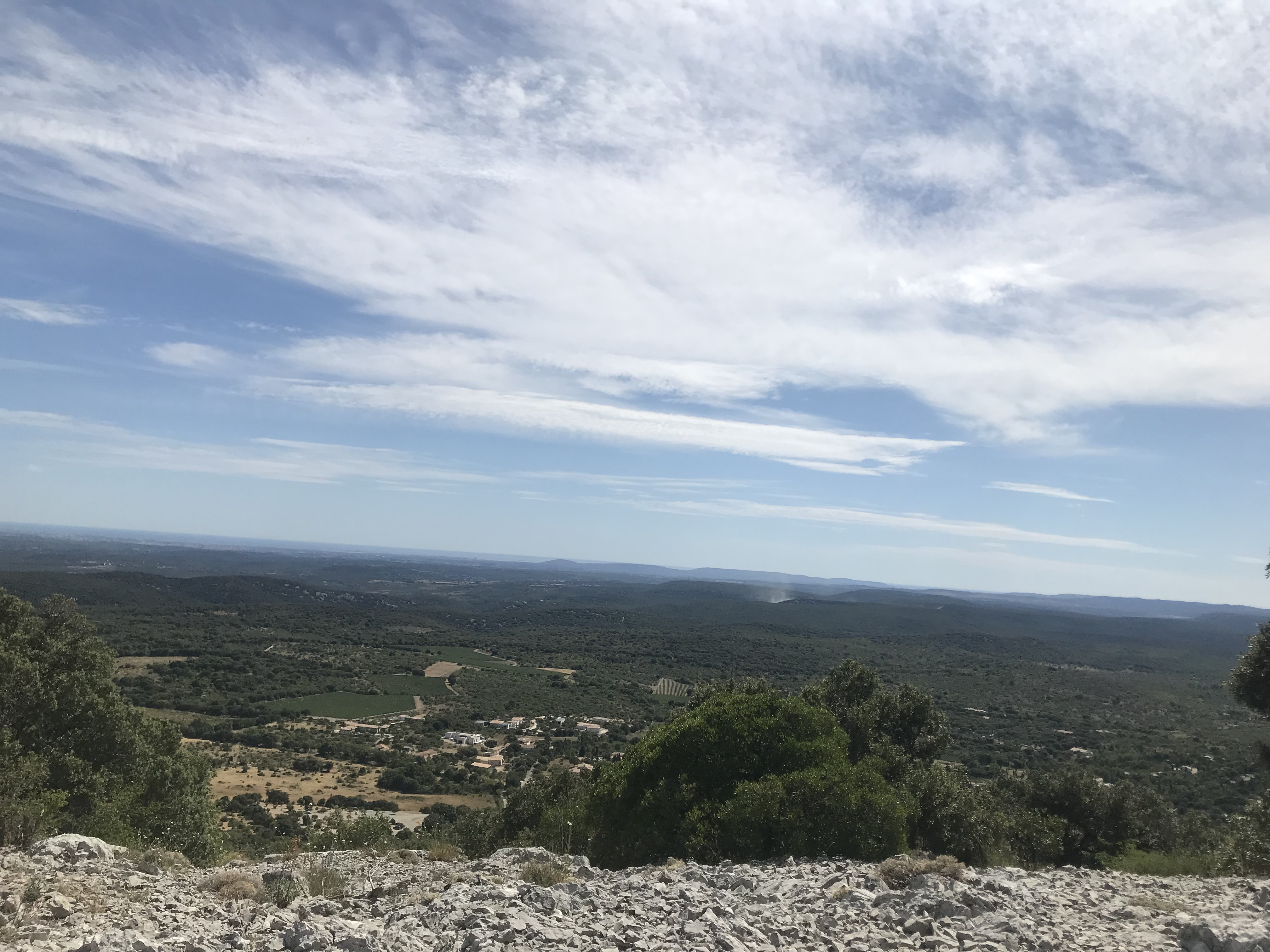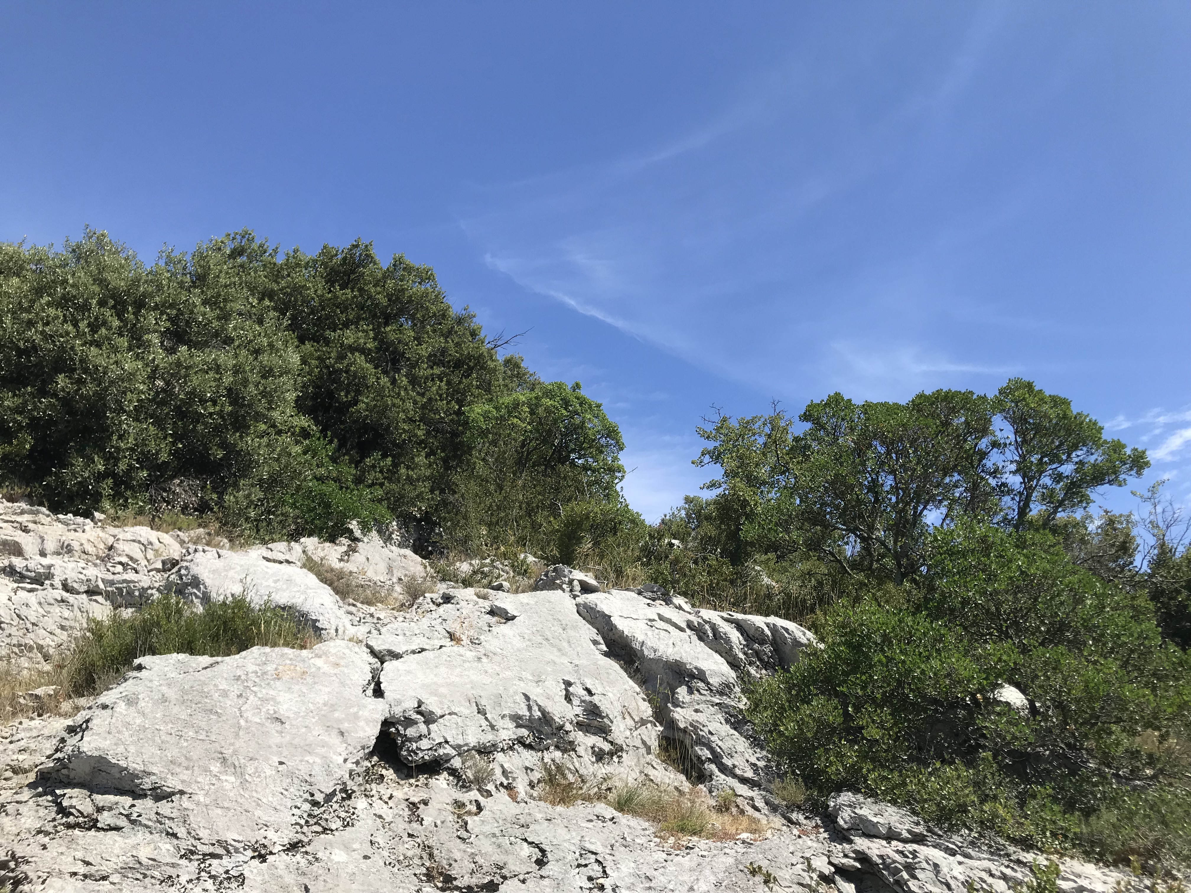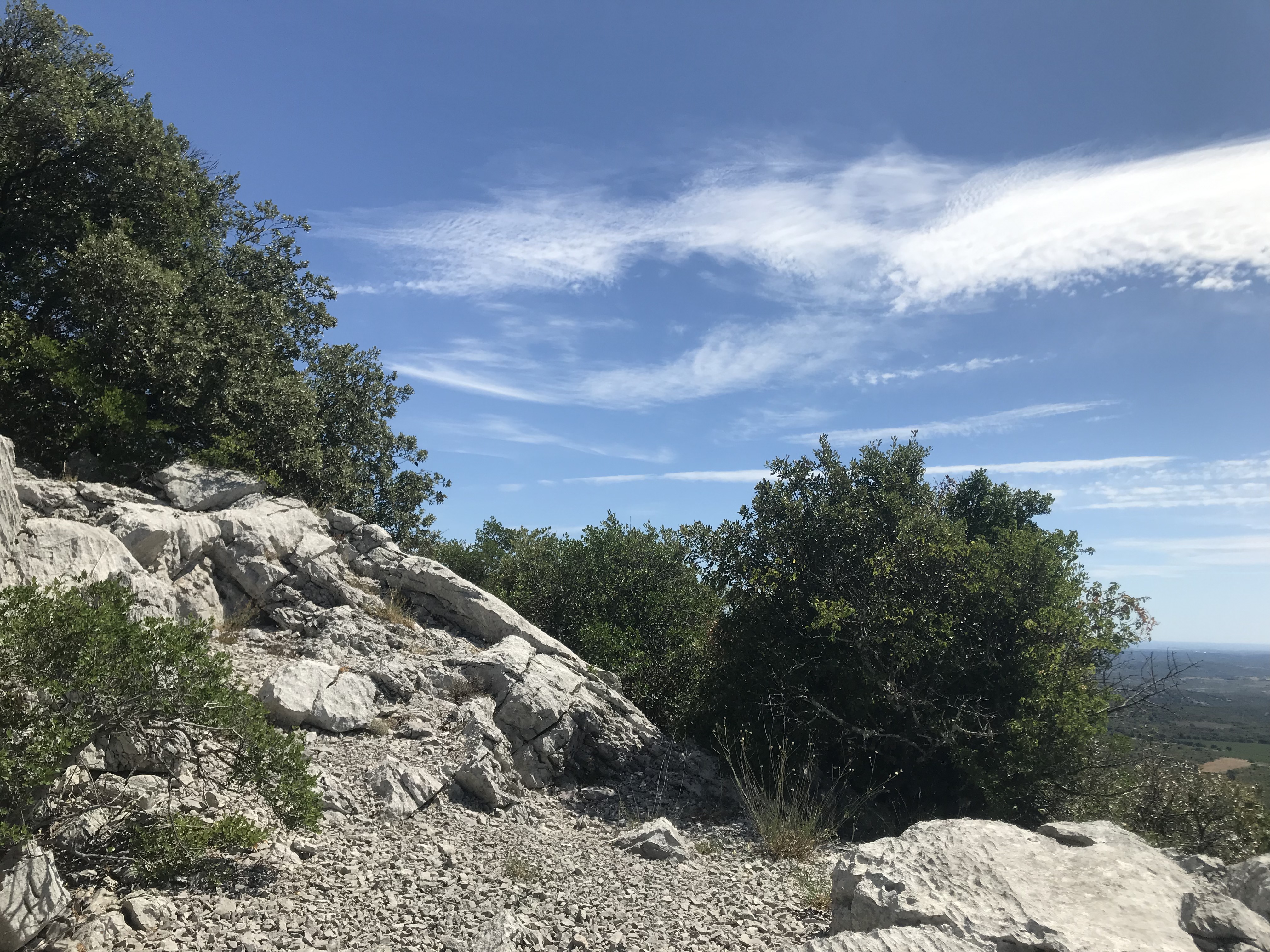 Et c’est parti !D’ici, on peut déjà apercevoir la tour du pic saint loup. Parfois, il faut faire un peu d’escalade…!Souvent, en fait.