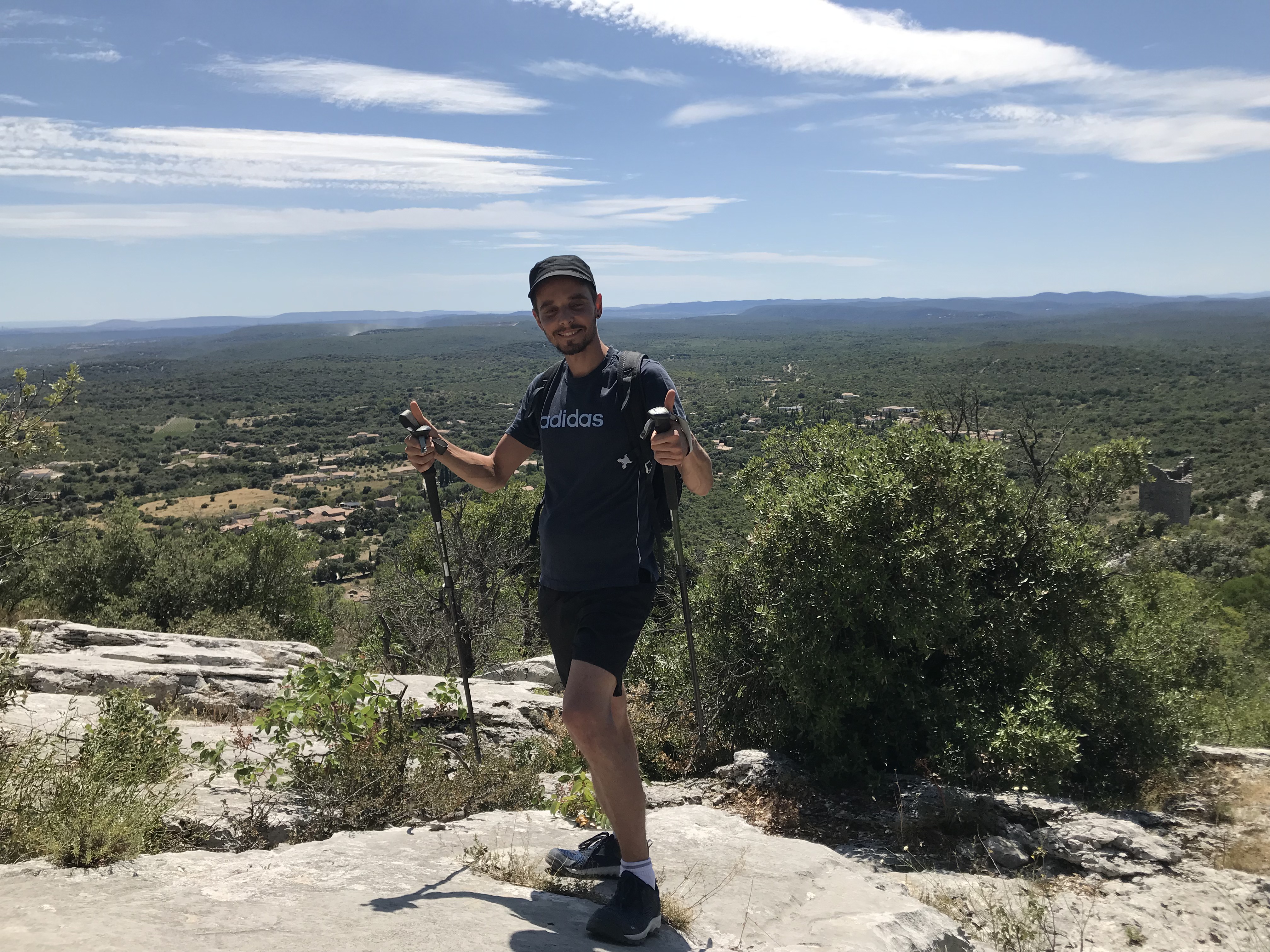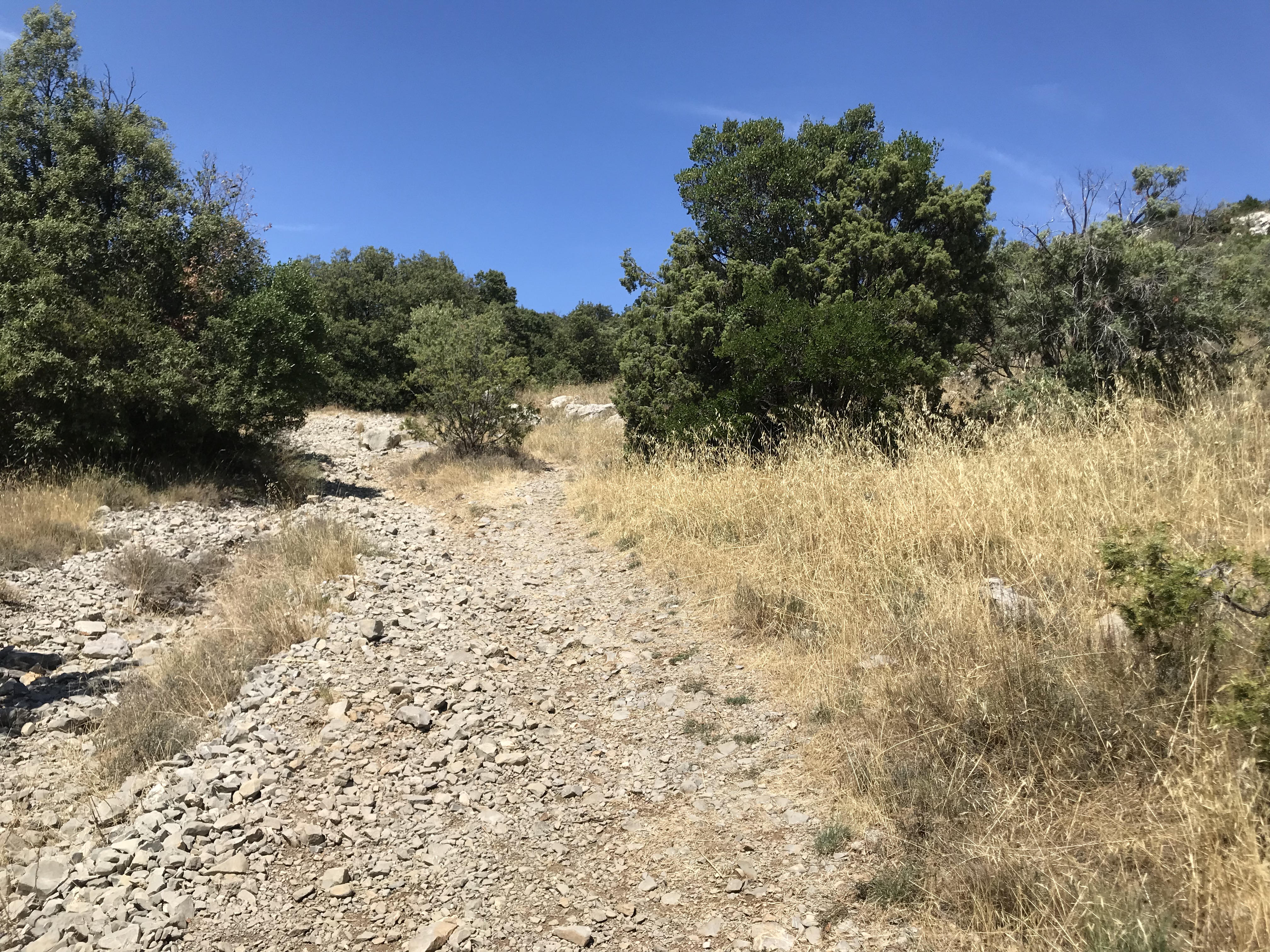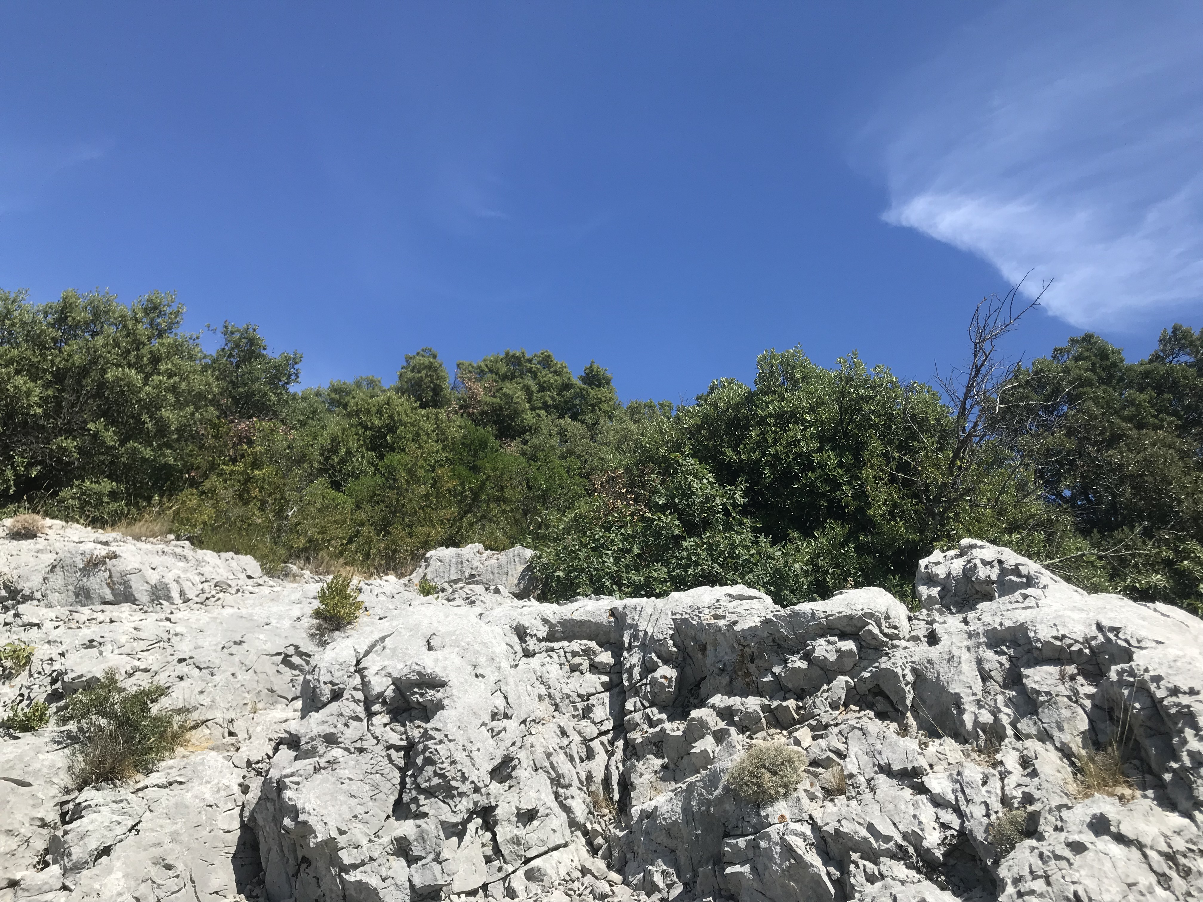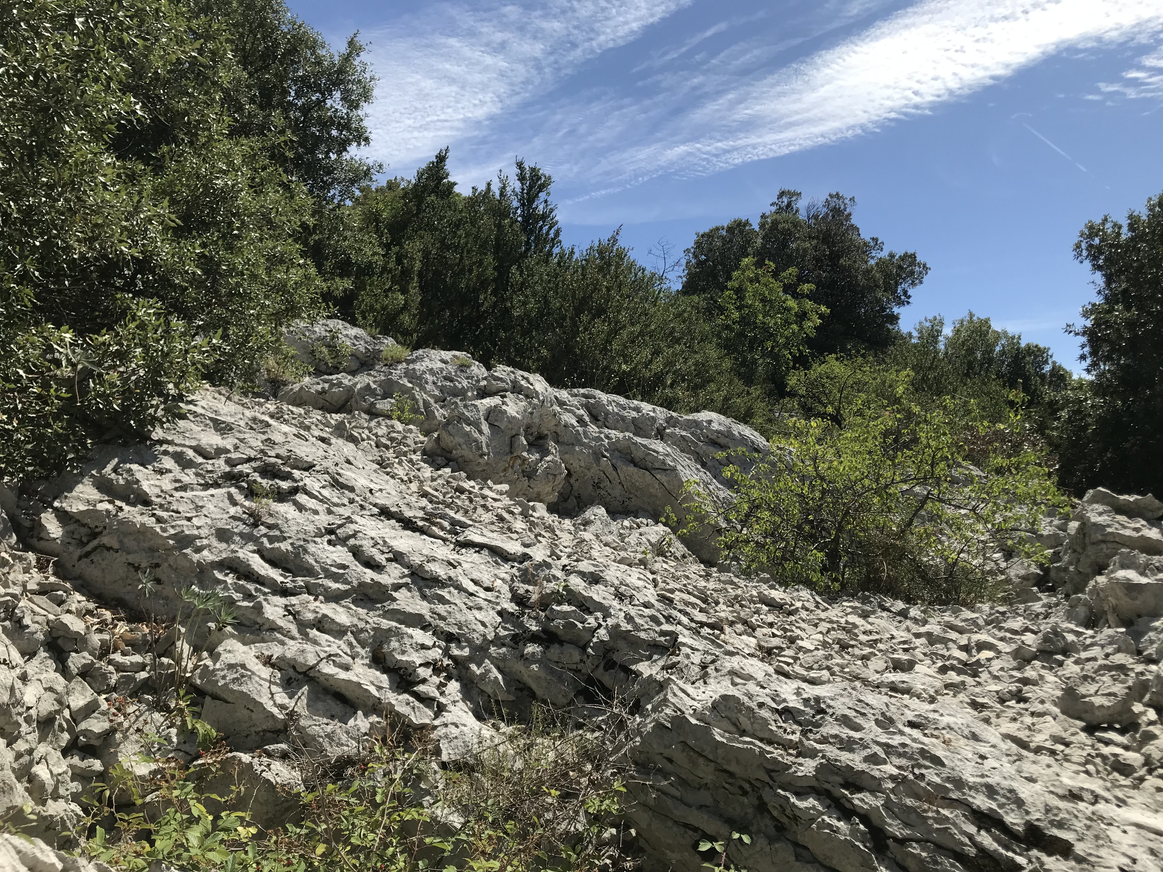 Et c’est parti !D’ici, on peut déjà apercevoir la tour du pic saint loup. Parfois, il faut faire un peu d’escalade…!Souvent, en fait.